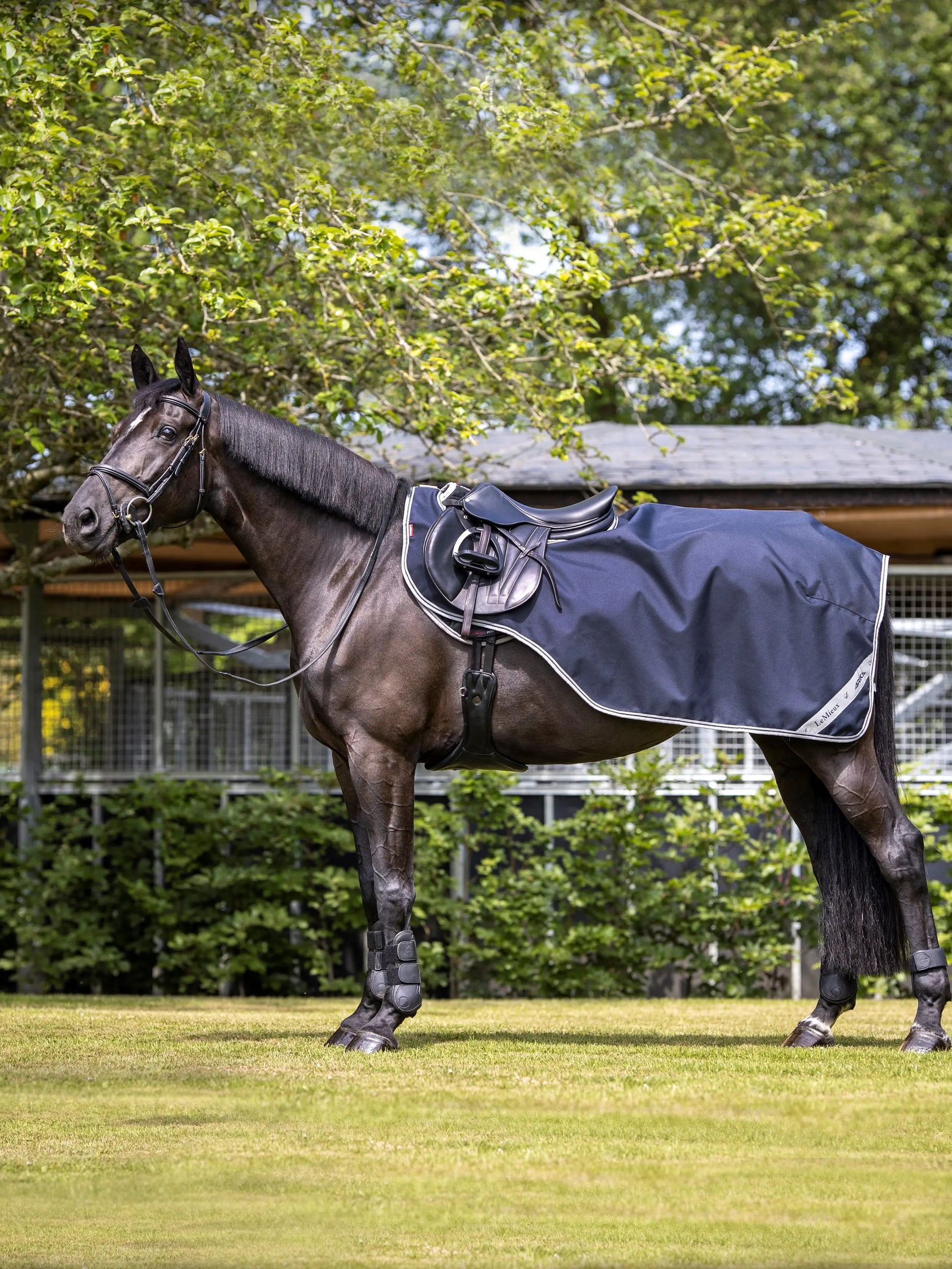 L’extérieur imperméable et la doublure en micropolaire dispersent la transpiration tout en protégeant de la pluie, aidant à réguler et à garder les chevaux au sec.